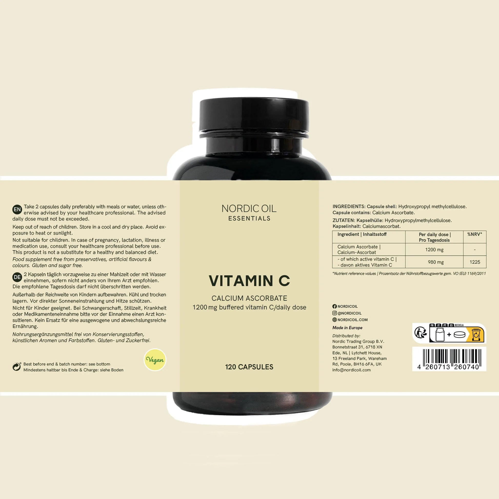 - 120 vegan Vitamin C capsules